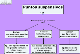 “El punto cierra la frase y clausura la palabra. Los dos puntos, gráficamente, se constituyen en un enchufe sintáctico con lo que le sigue. Los suspensivos –solo tres y no más que tres–, se alzan como pilotes de un puente que se insinúa más allá del texto, ofreciéndose a la colaboración del lector con su potencia sugestiva de lo no dicho: ‘Y desde entonces, ya no leímos más…’ dice la historia de Lanzatote y la reina Ginebra, y se calla el amante. ‘Agua, amo…’, dice el mono al final de Yzur, de Lugones y se abre la posibilidad de que el mono sea un hombre degenerado” indica Pedro Barcia, Presidente de la Academia Nacional de Educación y ex presidente de la Academia Argentina de Letras.